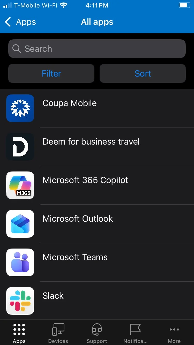 Second, the Apps tab lists all apps made available to you. Some apps are required (auto installed), and do not show here (ie. Microsoft 365 apps, Company Portal app). some apps only show if you have access to them (Island Browser). You may also obtain apps from the Apple App Store as usual. If you believe you are missing mission critical apps that are not available via the App Store, please submit an MDM ticket: https://ticket.powerschool.com/support/catalog/items/1275